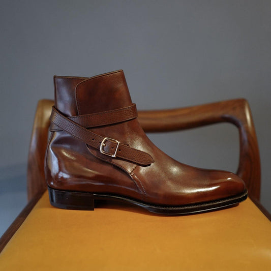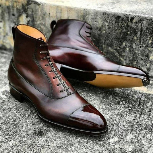 Men's Handmade Dark Brown Patchwork Lace-Up Boots