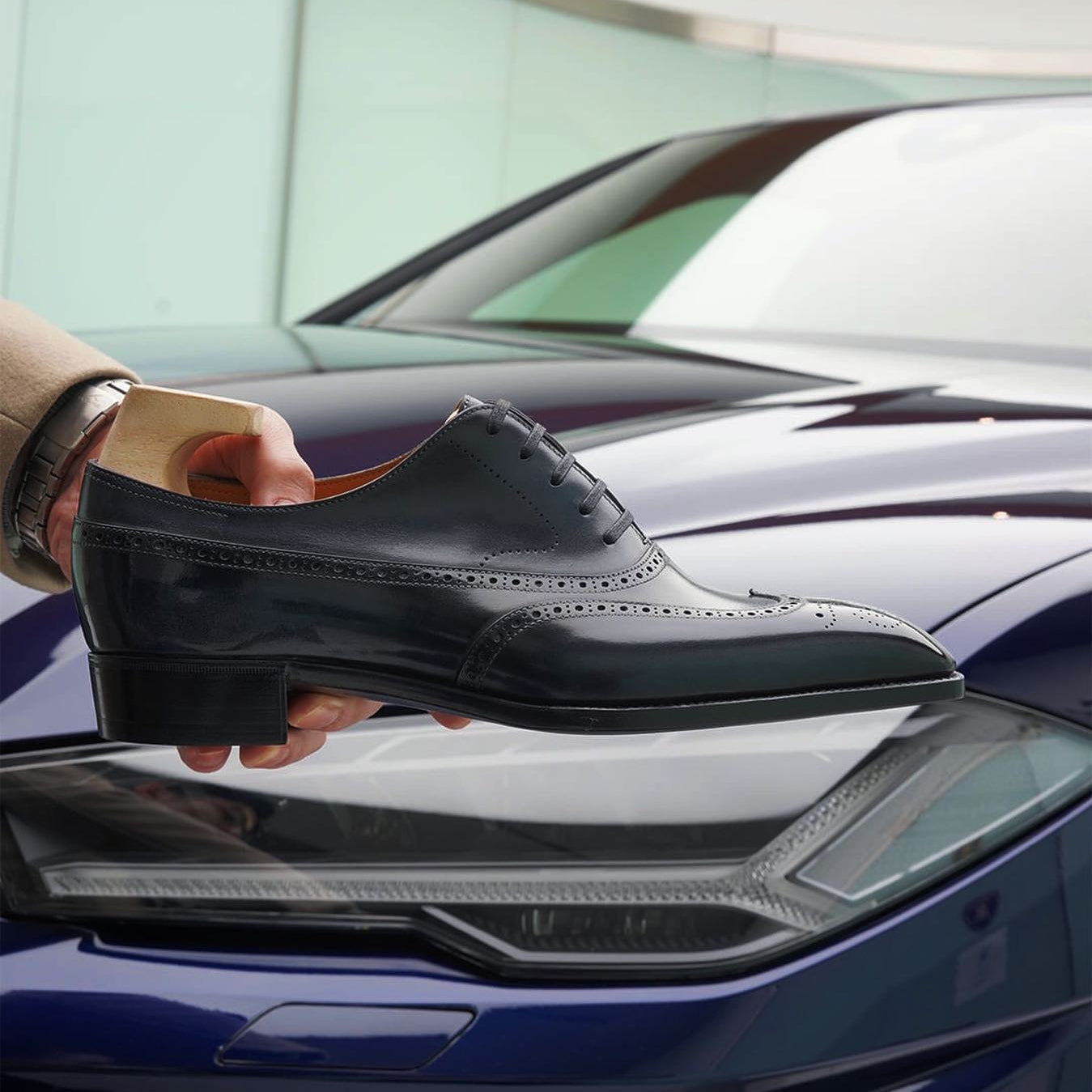 Black Pointed Toe Business Handmade Brogue Lace-Up Oxfords